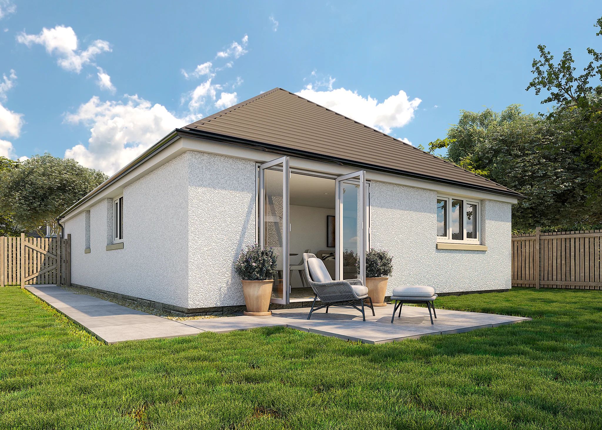 The Elm is a stunning three-bedroom bungalow that offers all the essentials for contemporary living. The Elm boasts an open-plan kitchen, living and dining area with patio doors designed with open space and natural light in mind. The Elm hosts three bedrooms all on the ground floor with built in wardrobes, all of which are accompanied by a spacious family bathroom. The master bedroom also benefits from a separate en-suite shower room.